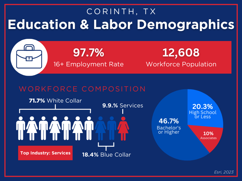 Please refer to the tables below for a more detailed breakdown of all education, occupation, and labor force demographics.